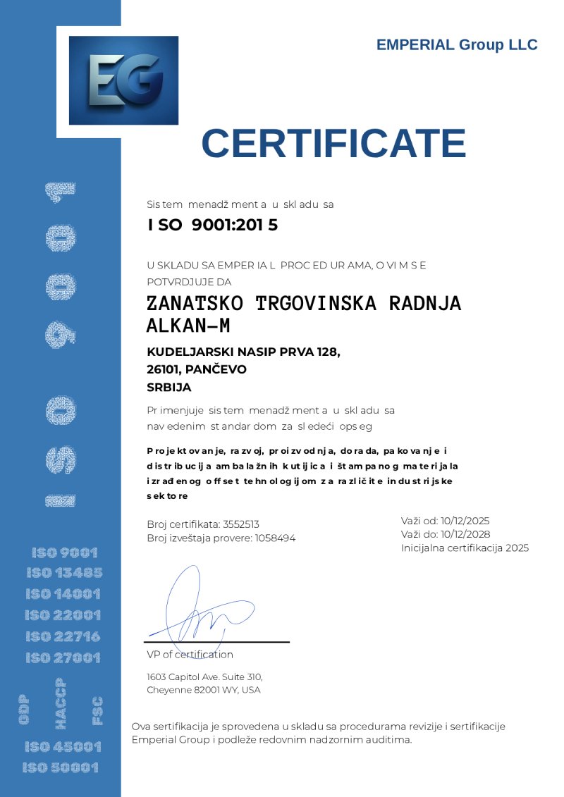 Iskustvo: Sa preko 25 godina iskustva, Alkan-M je stekao reputaciju pouzdanog partnera u oblasti štampe i ambalaže, pružamo rešenja koja odgovaraju vašim potrebama.